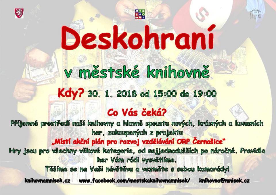 Městská knihovna zve všechny na Deskohraní. Komu se líbilo to naše, může to zkusit i v knihovně.