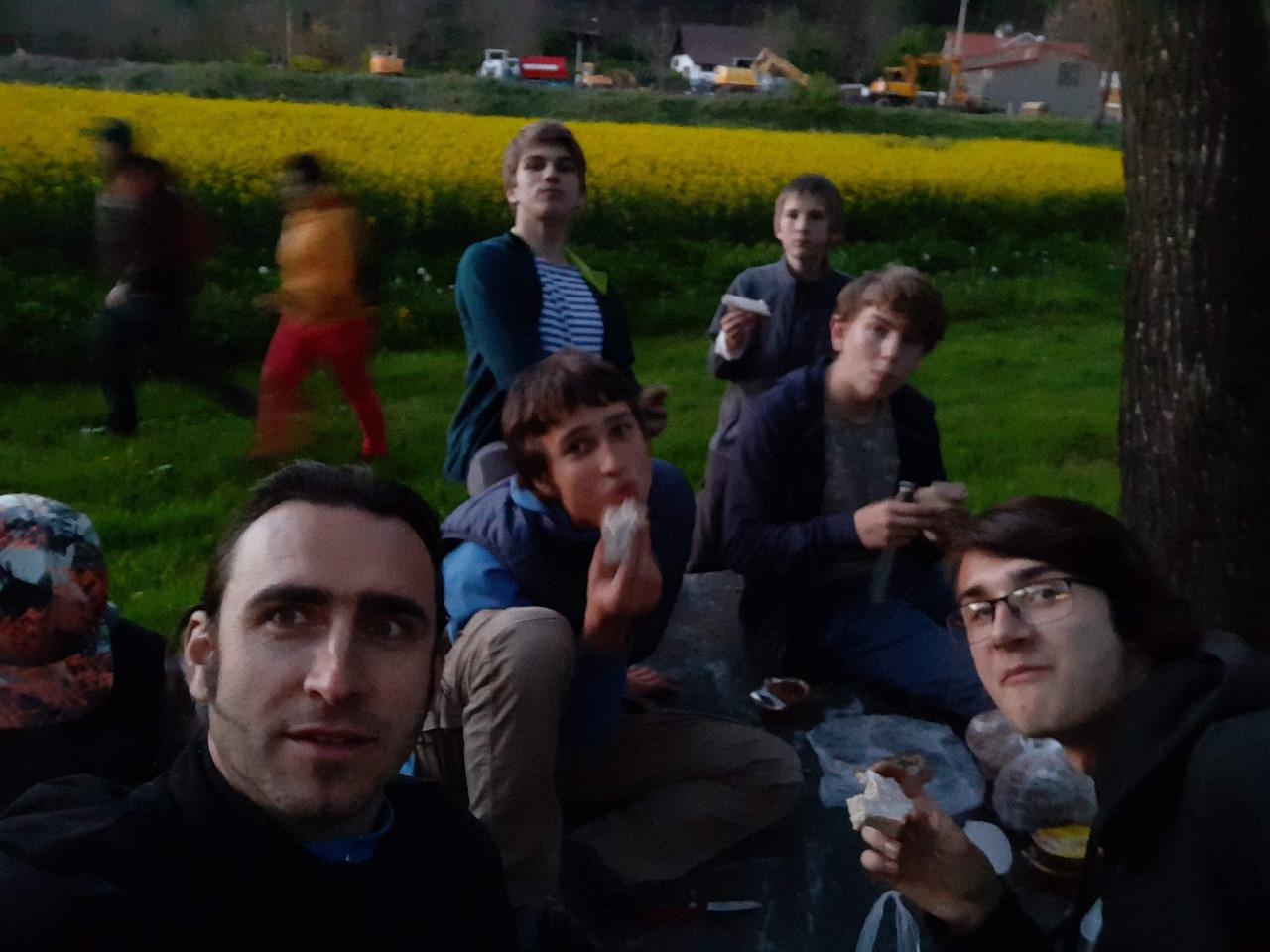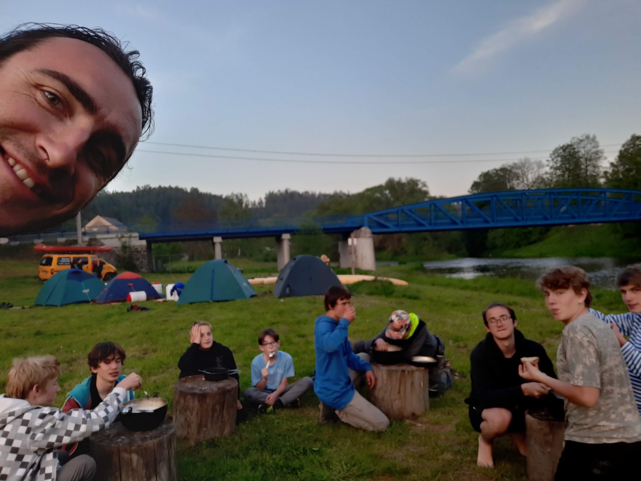 Postavíme stany, dáme večeři na kameni a pomalu se začínáme ukládat. Pár jedinců stále dráždí Babišova řepka u kempu, takže se chvíli věnují pobíhání v kolejích po hnojení. Výsledek je že jsou mokří a smrdí stejně jako řepka..jpg)